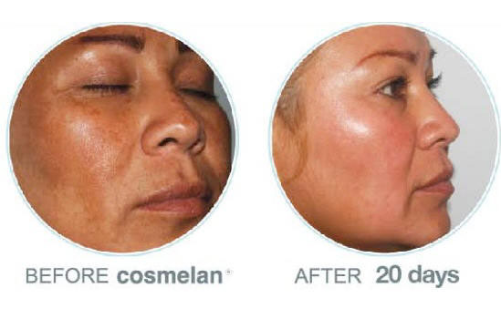 In Dr. Bahari's opinion Cosmelan Depigmentation Treatment is the most effective (non-invasive) treatment for excessive skin pigmentation available today. It helps to even skin tone affected by discolorations and hyperpigmentation due to Melasma, photodamage and PIH. The results achieved with a treatment and regular post-treatment maintenance with Cosmelan is remarkable, take a look at the before and after pictures below: